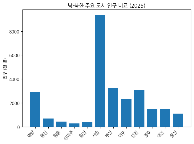 - 통계청 북한통계포털 (kosis.kr/bukhan): [주요지표] → [인구] → [주요 도시 인구]